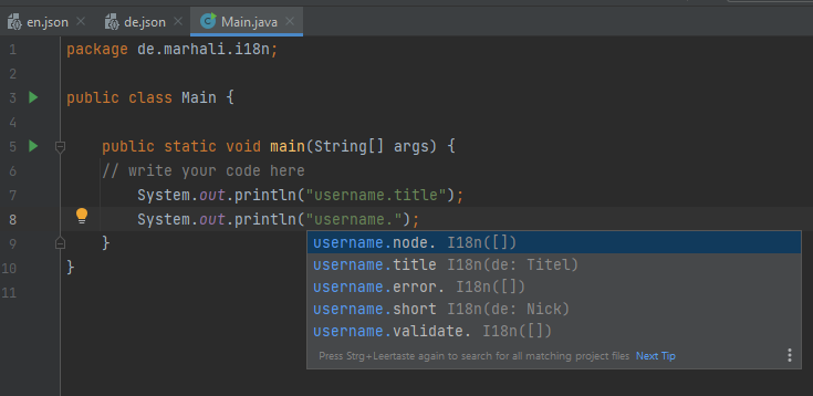 Show key completion as example